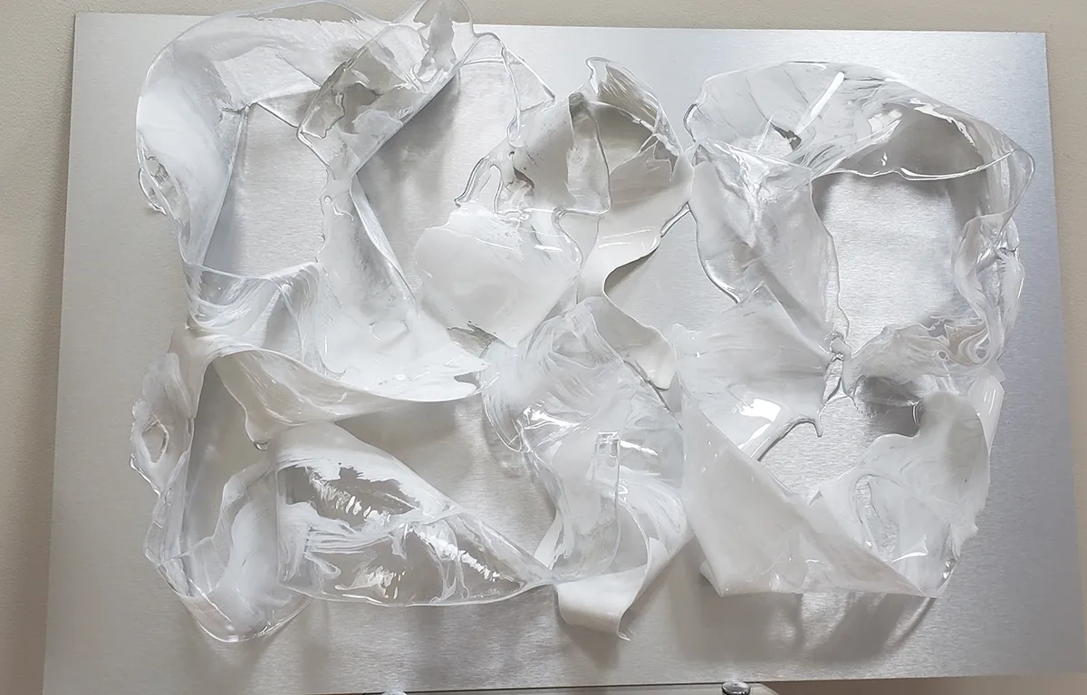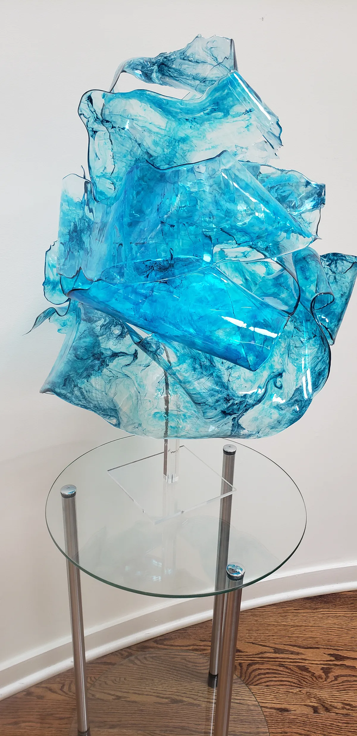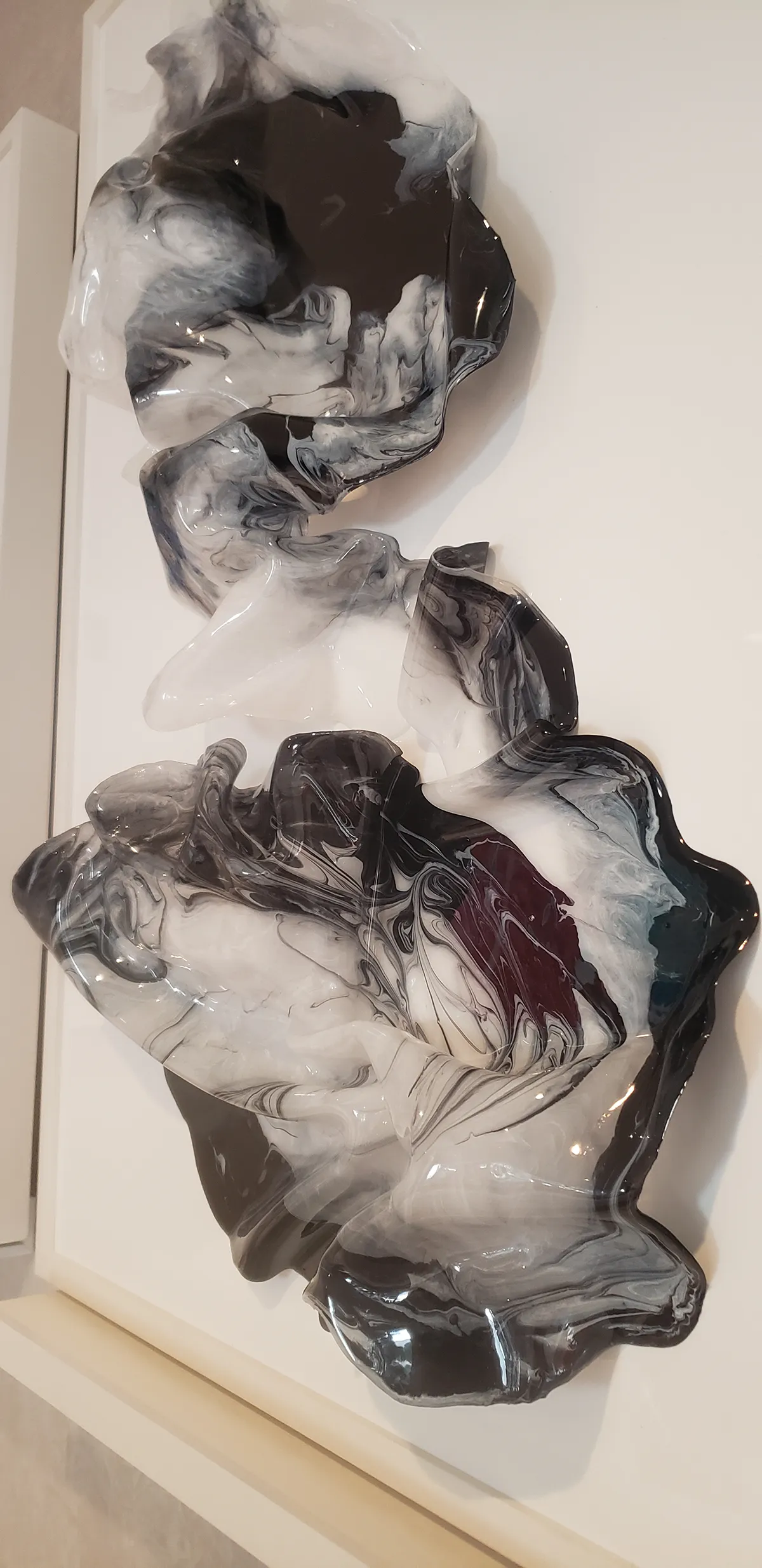 Marcy Axelrod creates abstract sculptural art from resin and other materials. Her process begins well before she engages with her medium. To her, the resin is already art—flowing, shifting, alive, before it takes shape, is colored, molded, hardened and mounted.