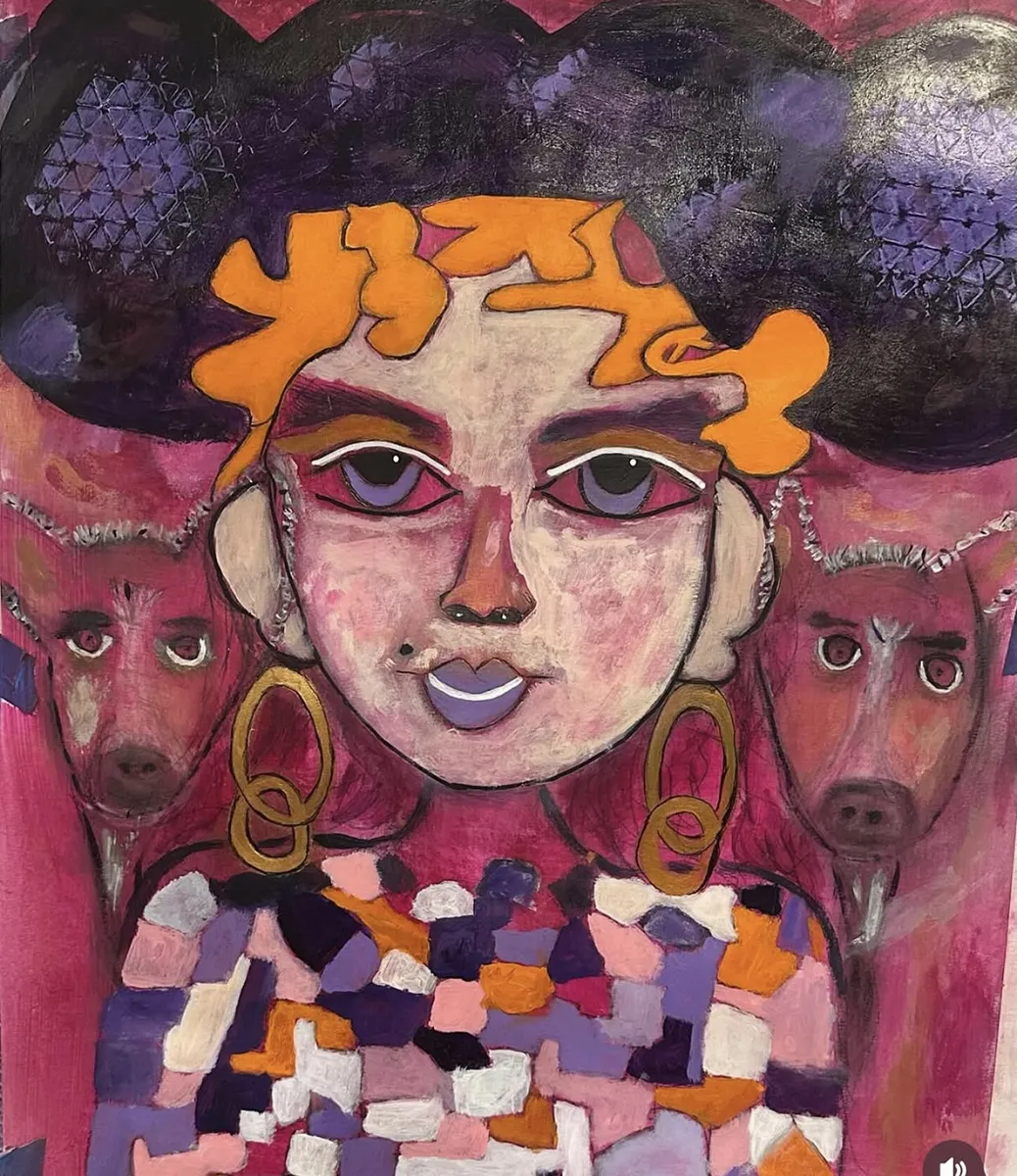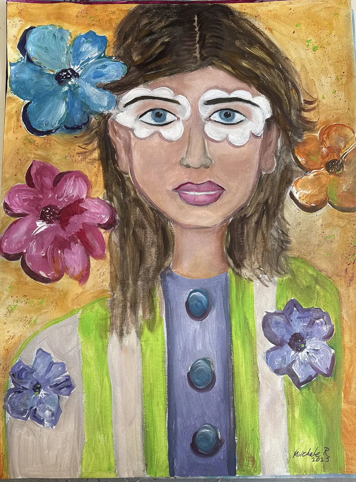 As an “outsider artist,” Michele never followed traditional rules, and that freedom has shaped her work. Drawn to the push and pull between fantasy and realism, often weaving characters into her pieces that feel like they have their own stories to tell. Florals show up a lot too—loving the emotion and movement that flowers can bring to a canvas.